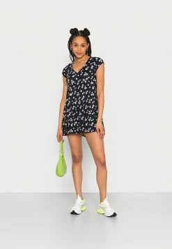 Hollister Co. TIERED SHORT DRESS – Freizeitkleid – Black/white Floral | Damen